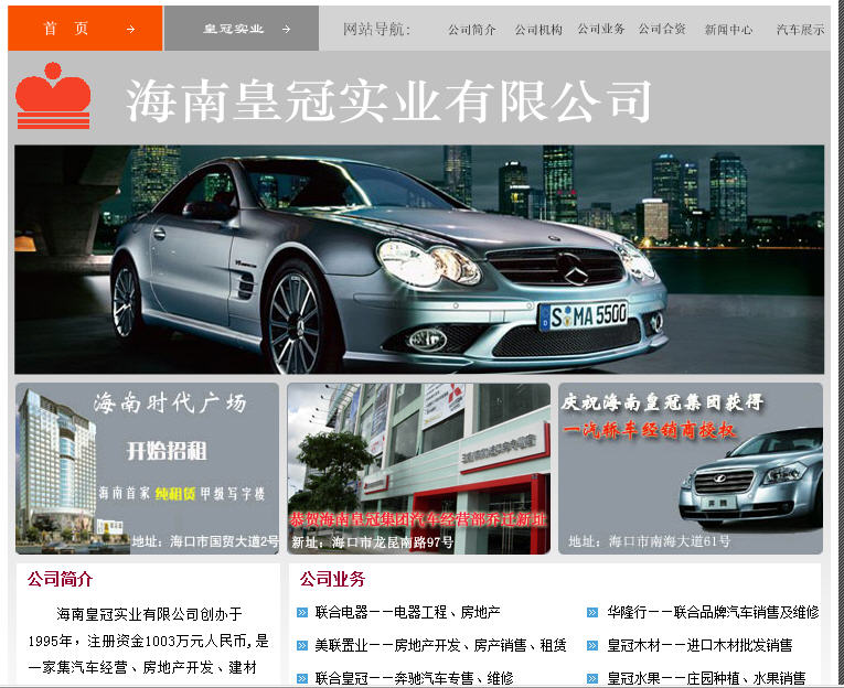 海南皇冠實(shí)業(yè)有限公司創(chuàng)辦于1995年,注冊(cè)資金1003萬元人民幣。海南皇冠公司是一家集汽車經(jīng)營(yíng)、房地產(chǎn)開發(fā)、建材供應(yīng)、水果種植銷售、礦產(chǎn)品開采加工于一體的多元化經(jīng)營(yíng)的集團(tuán)企業(yè)。海南皇冠實(shí)業(yè)有限公司是海南省百?gòu)?qiáng)企業(yè)。
